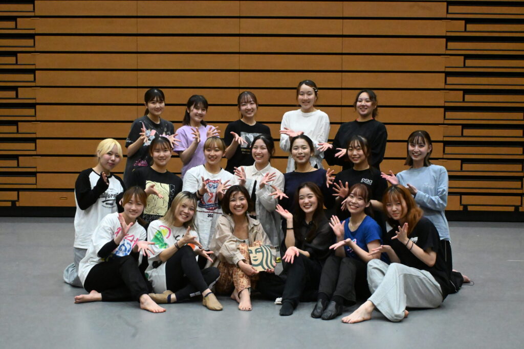 また、今回のワークショップにはアシスタントとして本学を卒業され、現在はテーマパークでご活躍されている光岡真帆さんもいらっしゃいました。真帆さんの踊りを間近で拝見し、多くの刺激を受けることができました。